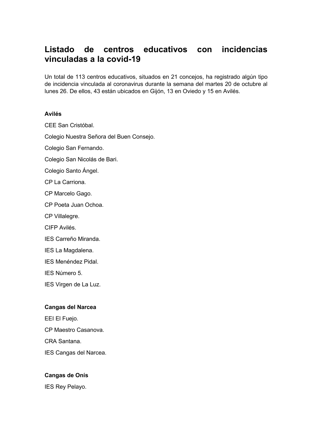 Microsoft Word - 2020_10_27 Listado de centros con incidencias covid.doc